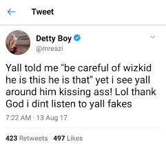 The legover crooner took to his twitter page to expose that folks who blackmail wizkid and told him to be cautious of him are the one displaying him love the maximum.
